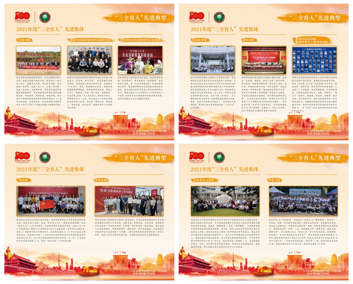 2021年,为进一步营造人人讲育人、事事为育人的良好氛围,以党史学习教育为契机,学校党委总结多年来开展“三育人”评选表彰工作的有益经验,于今年6月制定发布了《北京理工大学“三全育人”先进集体、先进个人和标兵评选表彰办法(试行)》,并随即启动了第一届“三全育人”先进典型评选工作,以高标准、严要求选拔业绩突出、公认度高、示范性强的先进集体和个人。